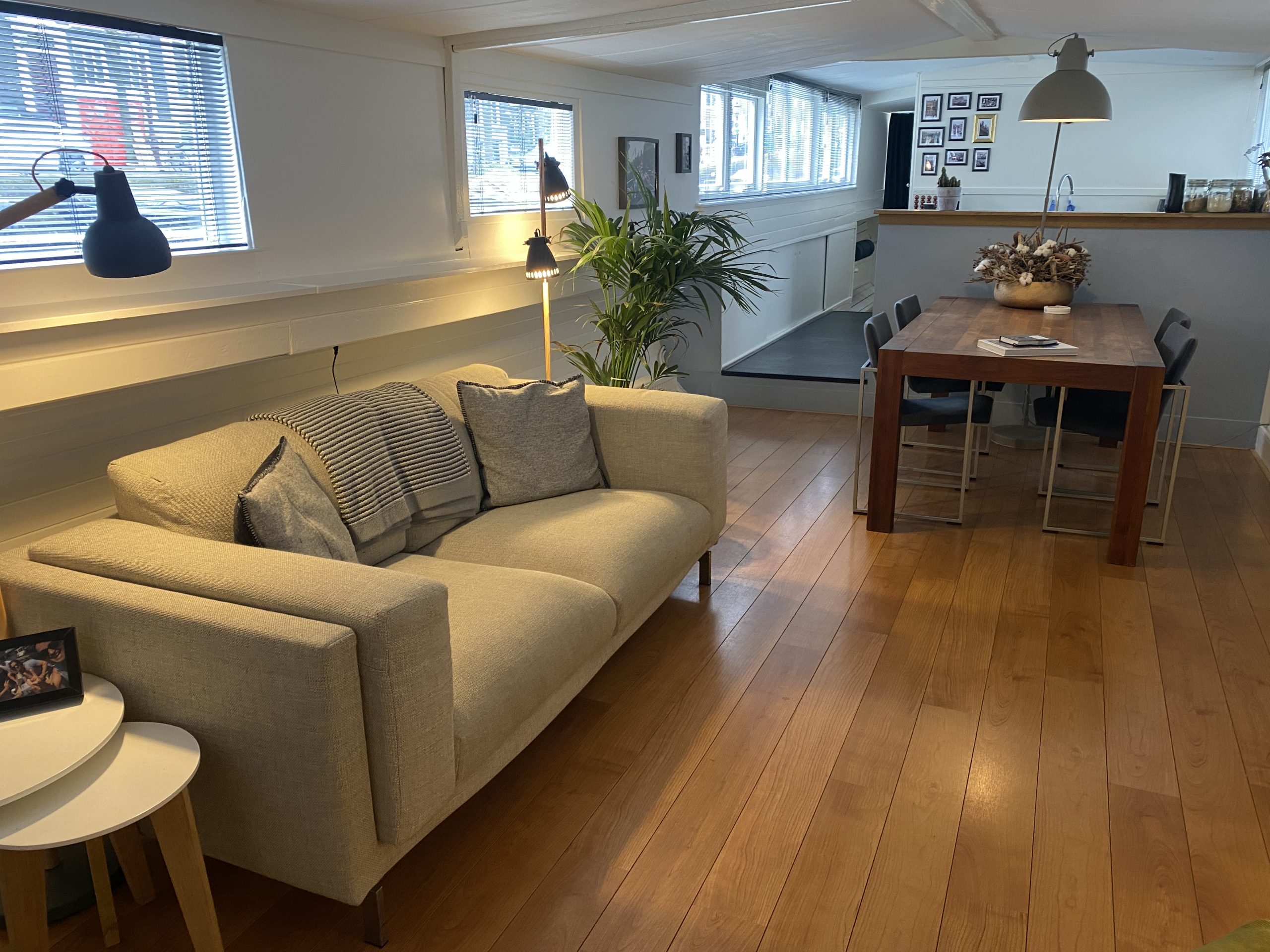 We would absolutely return. The space is unique, being a repurposed working canal boat. We found the design quirks to be charming and not entirely unexpected by anyone who has... read more spent time aboard boats. Olaf greeted us personally and explained the various systems. The interior is clean with modern decor. The lounge chairs on deck are a great spot for an evening beverage while watching boats touring the canal. They are not at all intrusive as they are very quiet (many are electric powered) and pass at very low speed. The neighborhood is handsome and quiet with plenty of good shops, cafés and restaurants. Public transit is inexpensive and is close by. We very much enjoyed our stay!